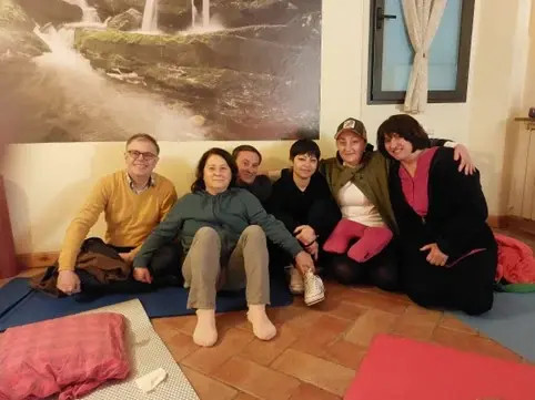Il gruppo si è mosso con fluidità, due persone erano alla loto prima esperienza in assoluto, non avevano mai partecipato a gruppi di meditazione e neanche avevano mai praticato discipline connesse. Neofiti veri e propri. Entrambe straniere, una ucraina e l'altra rumena. Gli altri 4 invece collaudati da anni di meditazione e di lavoro su di se e tutti sannyasin. L'ideale per affiancare le due partecipanti in un'esperienza che, definire ardua, è un eufemismo. Onore al coraggio di queste due ragazze che si sono messe in discussione, non senza timore e disagio soprattutto all'inizio. Più lunga del solito quindi la fase introduttiva per "rompere il ghiaccio" e creare un minimo di centratura e relazione con l'altro. Seguita da una più "spensierata" ma non per questo meno impegnativa sia fisicamente che energeticamente "Stop Dance". Ho utilizzato solamente i primi tre step, giusto per riscaldare l'ambiente e creare sinergia e confidenza tra i presenti.